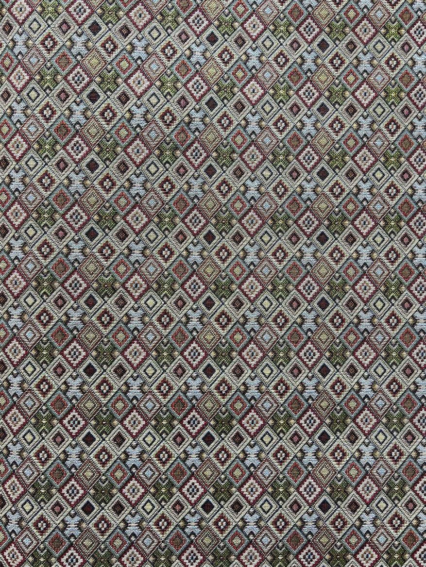 Високоякісна гобеленова тканина Curry miniз геометричним малюнком. Вироблено в Іспанії. Таку тканину можна використати для виготовлення подушки, скатертини, верхнього одягу чи іншого декору. Ширина тканини 140 см. Також можна придбати таку ж тканину в ширині 280 см.