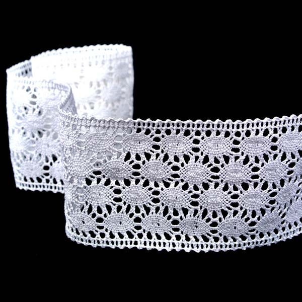 Якісне мереживо вироблене на коклюшних машинах з високоякісної бавовняної мерсеризованої пряжі. Це мереживо підходить для декорування одягу, костюмів, пошиття аксесуарів для дому, текстильних аплікацій, печворку, креативних витворів, скрапбукінгу, колажів, святкових композицій та флористики.