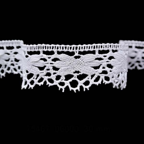 Якісне мереживо вироблене на коклюшних машинах з високоякісної бавовняної мерсеризованої пряжі. Це мереживо підходить для декорування одягу, костюмів, пошиття аксесуарів для дому, текстильних аплікацій, печворку, креативних витворів, скрапбукінгу, колажів, святкових композицій та флористики. Купити онлайн. Роздріб та гурт. Виробництво — Чехія.