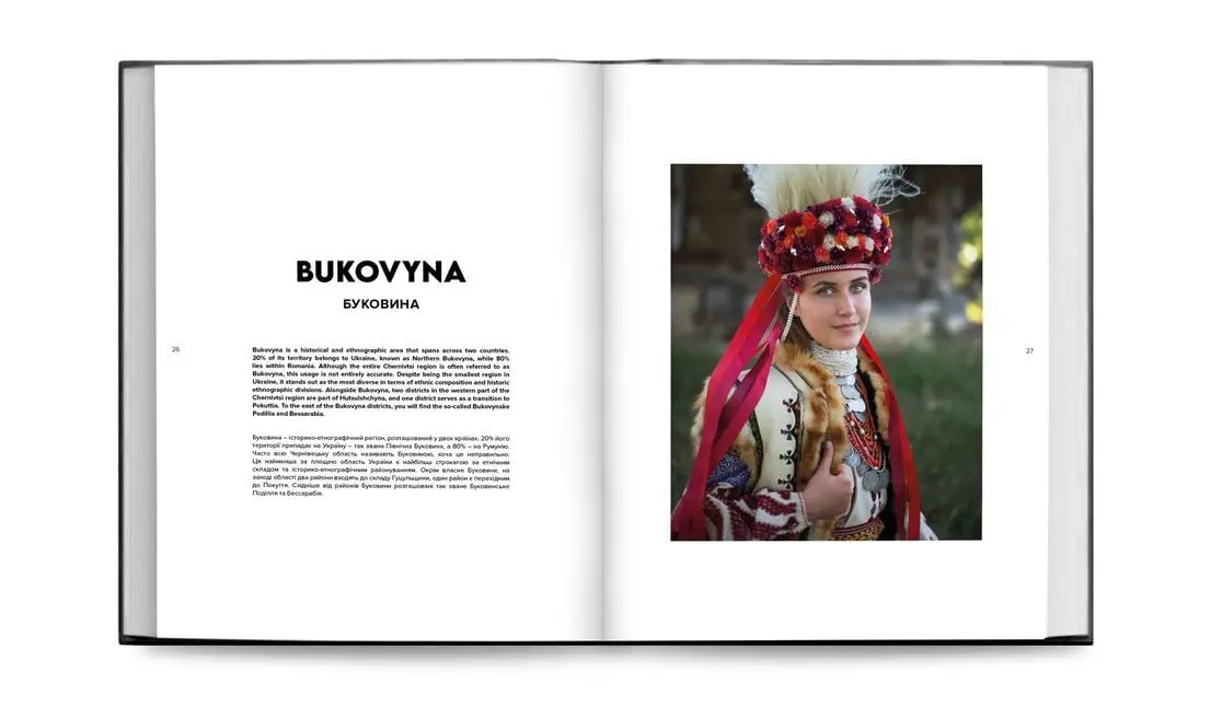 Фотографії супроводжують глибокі тексти та професійні пояснення від видатного етнографа Юрія Мельничука, що надає читачам достовірну історичну інформацію щодо вбрання.